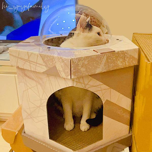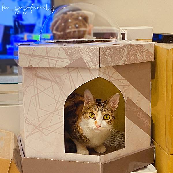 這是我們家第一次讓貓咪使用這種有透明設計的窩,